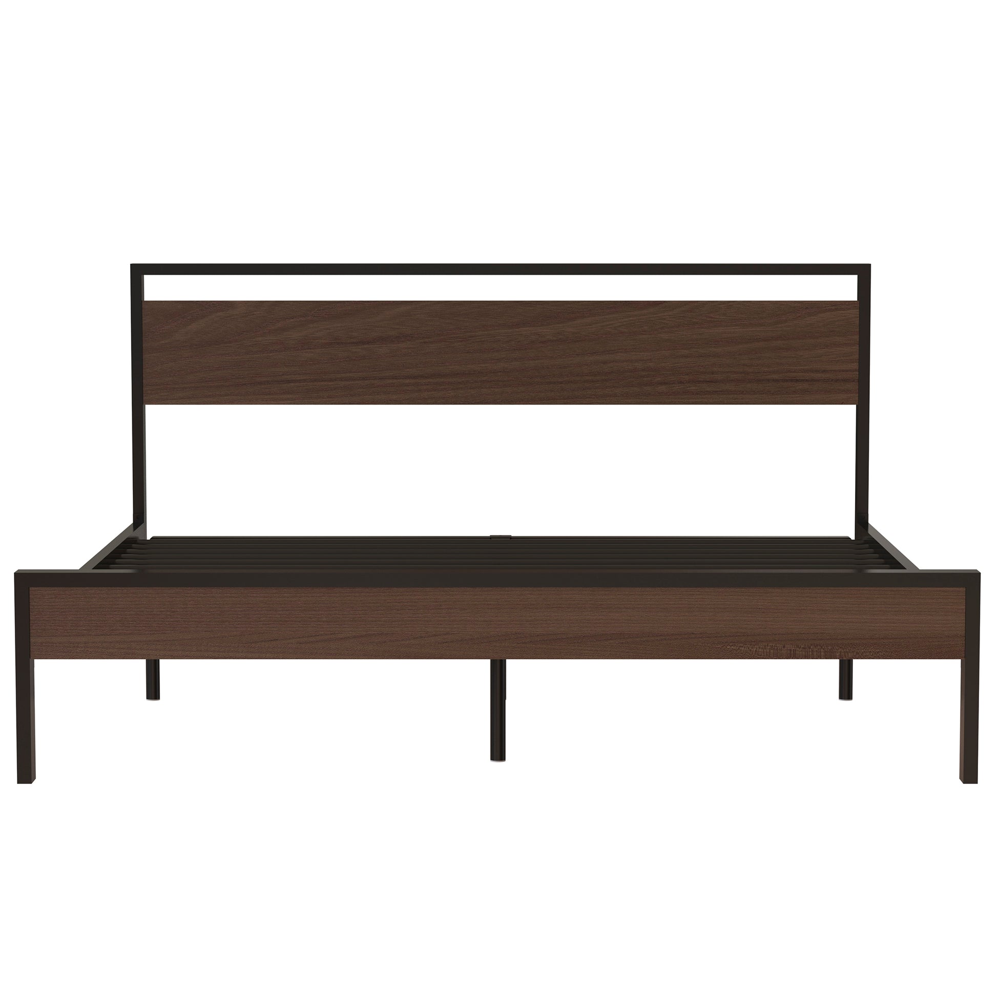 Ceres Metal Bed, Black with Walnut wood Headboard&Footboard, King