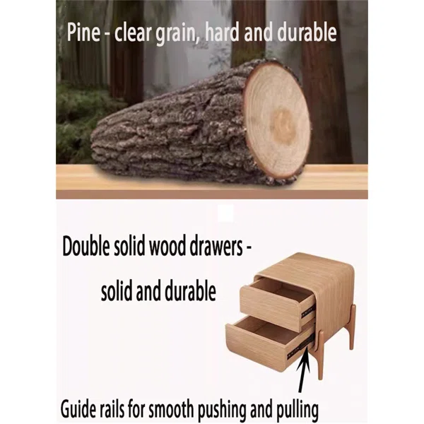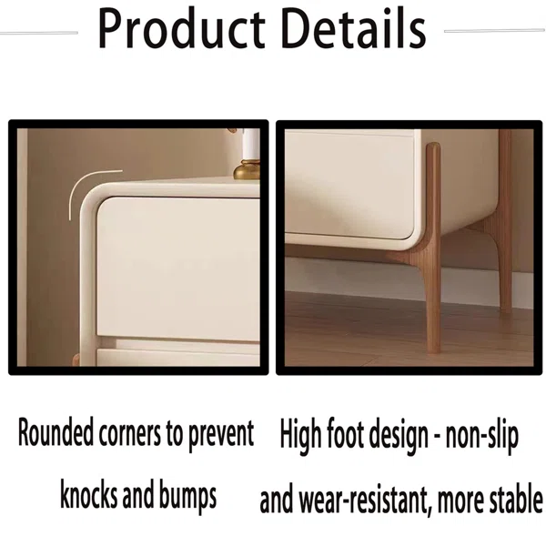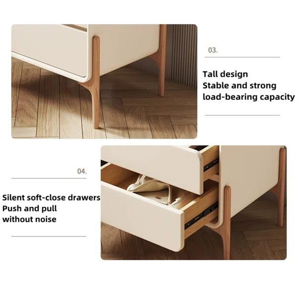 Modern Off White Nightstand 2-Drawer Bedside Cabinet