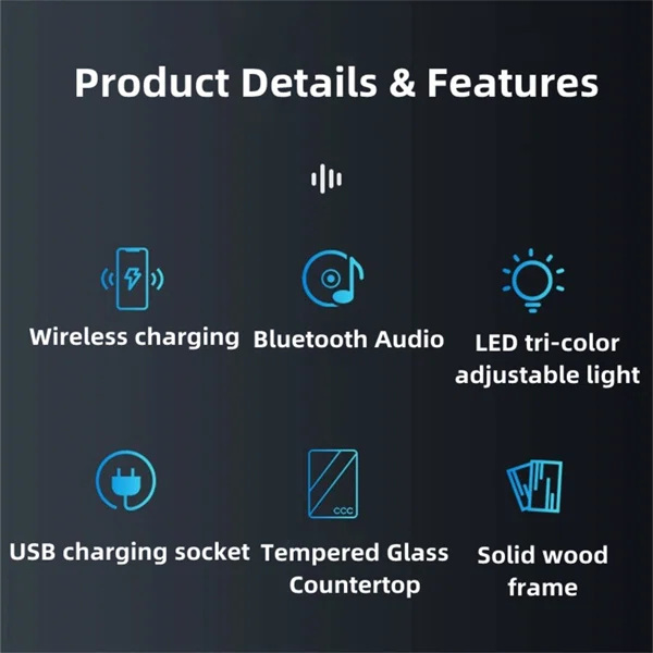 Modern Smart Floating Nightstand with Wireless Charging & Bluetooth Speakers & USB Port