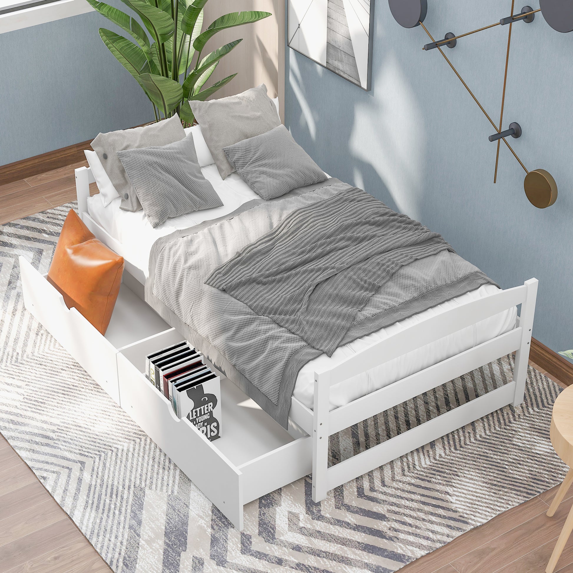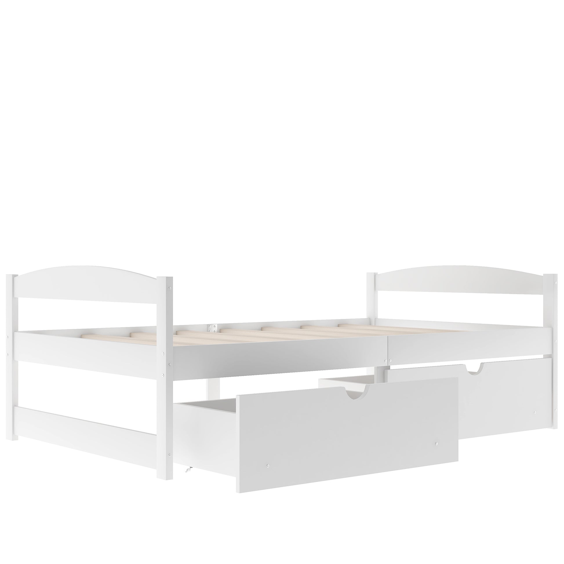 Twin size platform bed, with two drawers, white