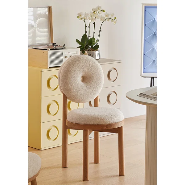 White Boucle Dining Chair Side Chair Natural Wood Legs